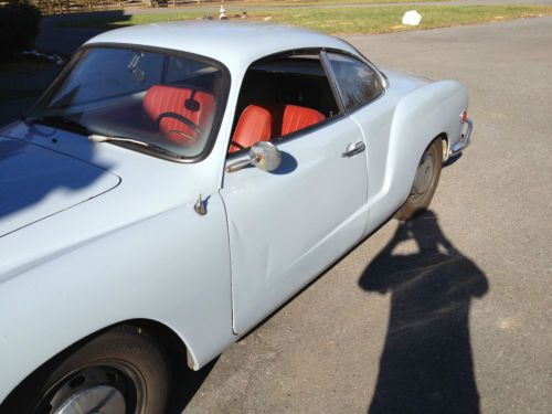 1969 Volkswagen Karmann Ghia. Originally imported from Germany to Hawaii, made it's way to California and finally the east coast. That being said the car has no rust issues, and any major points of potential concern have been repaired and patched. The 1969 model of the Karmann Ghia was the last year of the desired smaller tail lights, and the first year of the independent rear suspension.
