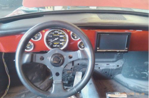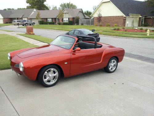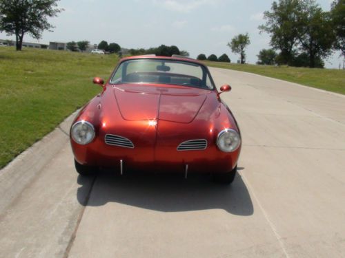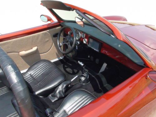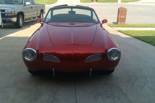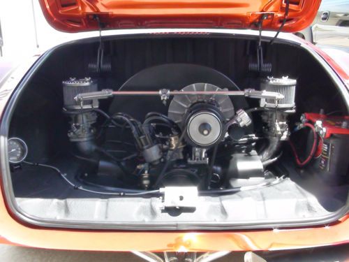 This is a 1969 VW Karmann Ghia. This is a really nice car that was customized into a roadster. The engine is a 1915cc with dual Weber 40 IDF carburetors from CB Performance. Current mileage is 3,502. Being a full time open top, I only drove it in perfect sunny weather!! The transmission is a new 4 speed freeway flyer. A new set of floor pans, front steering parts and shocks all the way around were installed by Dynabug in Tulsa, OK. The 4 wheel disc brakes are crossed drilled and are also from CB Performance. The front end has dropped spindles with stock front beam. Most of the sheet metal is powder coated for better cooling. Wheels are Empi Spoke Chrome plated sitting on 195/550R15 Nitto tires. The Stereo system is an Alpine 205 DVD Player, that plays DVD's even while in drive. Rear subwoofers(2) are JL Audio 12w3v3-4 running off a Kicker 1000w Ampliflier. The front component speakers are Focal 165KF 6.5" with built in crossover running off a Kicker 350w 4 channel Amp along with Focal 130CA for the mids. This system really hits hard, has deep bass, clear sound, without all that rattling noise!! Dynamat sound dampening material is installed under the upholstery. A Compu-Fire Dual Cool 90 Amp Alternator installed to support all this power along with a Red Top Battery. The Seats are from SCAT and are the Low Pro's with a matching rear seat with extra padding. Interior accessories are from Sewfine using Earth Tweed. A custom roll bar for added safety. The dash is loaded with Carbon Fiber Autometer Gauges which includes the Speedo, Fuel, Oil Psi, Oil Temp & Volt Meter. A Tachometer is housed in the engine area for setting the idle. The body was removed from the pan, the roof was cutoff, sandblasted, shaved door handles & gas cap, reinforced convertible pillars, custom dash holes, custom wiring harness, paint and body work all professionally done by Vintage Customs in Broken Arrow, OK. This is really a fun, fast car to drive and gets soooooooo many looks & compliments!!!! I really don't want to get rid of it but sometimes a man has to depart with his Toys :( Click/Copy Link for Youtube Video: http://www.youtube.com/watch?v=OT8mOErFOF8 |
