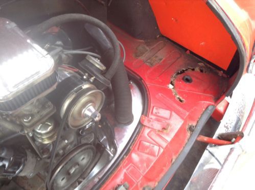 I took this car in as a partial trade on a tractor, the actual miles on the car are unknown. The car runs and shifts good. The interior is OK but has numerous flaws. The drivers seat has a rip and the dash pad has a crack in it. The car has a Gene Berg shifter and shifts very nice and smooth. The engine sounds good with an after market exhaust and air cleaner. This Karmann Ghia has been lowered and looks good but rubs a bit on the front fender when turning, needs lower profile tires or raised back up a bit. Body is overall good but has some rust in the drivers floor pan, which has a cheaper patch to it. The drivers door looks as if it has had some body work to it in the past and needs redone. This car is in good overall condition and would make a great project car and would be easy to fix the way you want it for not a lot of money. There is a small box of parts, including original parts replaced and some side trim that was taken off at some point, that go with the car. No reserve, thanks.