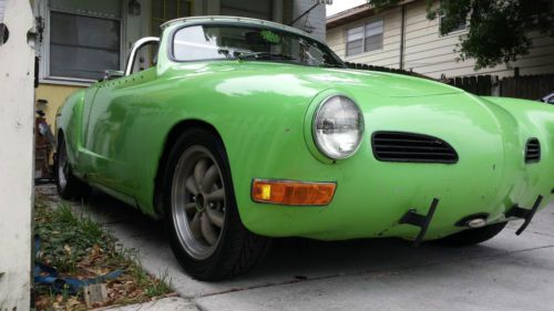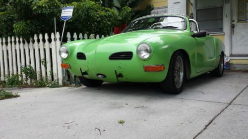 This is a unique, modified, one of a kind Karmann Ghia car that gets lots of attention and compliments everywhere we go. It was chopped and modified to a convertible with a roll bar and is now a two-seater. The outer door handles, bumpers, locks, and side windows were removed to drop weight and the doors were replaced with light, empty fiberglass doors. It has custom vinyl and plastic windows and a convertible top that are snapped into place with a buttom snap system. The top does have a tear in it, but is otherwise useable, although we hardly ever drive it with the top on. The engine was rebuilt about a year ago and converted from a 1776 cc to an 1835 cc, with a single barrel Weber 40 carburetor, and has only been driven about 2,000 miles or less since. It has a manual transmission and when the engine was rebuilt, we also put on a new exhaust, performance clutch, and brakes. We do not know how many miles are actually on the car. The speedometer says 44,772 miles, but that is incorrect. The car runs and drives good and is quick and lots of fun to drive!! We used it as a fun weekend cruising car, and took it to a few car shows, where it got a lot of looks and compliments. There is rust below the doors, which you can see in the photos, and some of it goes all the way through. Also, the gas gauge currently does not work due to an electrical issue. This is a great car, a great project, and very rare!! If you have any questions about the car, please ask before bidding, as there are NO REFUNDS and the car is being sold AS IS. You will also be responsible for picking up the car or arranging to have it shipped if you do not live local (Tampa, FL) within 7 days from date of purchase. Thanks for looking! On Jun-06-14 at 07:55:41 PDT, seller added the following information: I want to clarify that the car has a single double barrel Weber 40 carburetor. Also, the vinyl/plastic windows attach to the car using buttons and Velcro, and the convertible top attaches with buttons. Since the interior was completely redone, there is no glove box, only a "tray" under the dash. Basically, everything was done to this car to drop as much weight as possible.