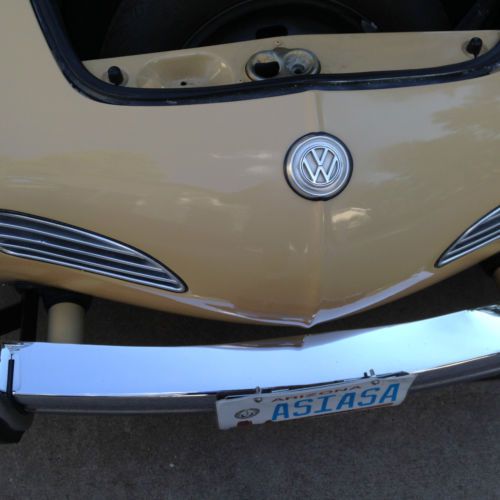All original parts, never wrecked, 72,016 miles. Stored almost 13 years prior to buying four years ago from third owner. 17,000$+ receipts in hand from restoration. Extra set of studded snow tires and wheels (75% summer tread remaining, 85% snows remaining). Big O warranty travels with new owner. Strong and tight runner: suspension, handling excellent. Never babied, always garaged. This a sweet ride. (Ask to see receipts; too many new parts to mention). As mentioned and seen in pics, there are a couple defects that (to me) have never been bothersome enough to have repaired: small front bumper blemish from low speed parking miscue; left front fender well paint slightly cracked (same incident). Paint overall still looks terrific as does interior (original VW punctured vinyl). Smoke free environment, oil changed every 2500 miles. Buyer responsible for transport of Ghia. I am happy to pick buyer up at Flagstaff Pullium Airport. Payment through PayPal, cashiers' check vetted at my local credit union, money order or cash. |