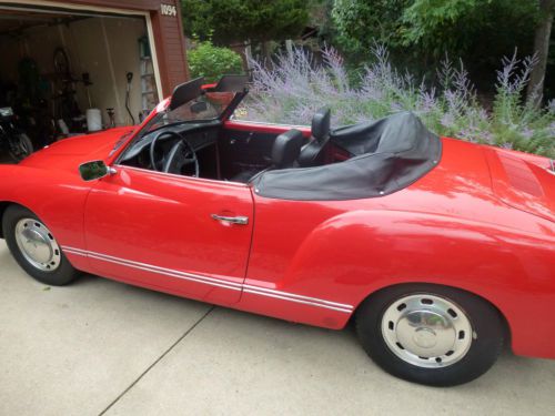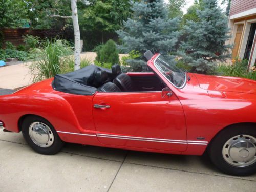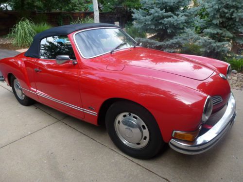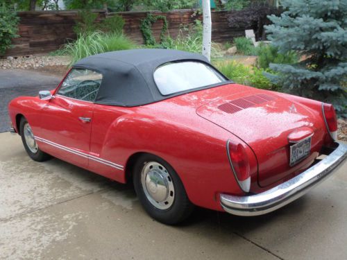 The Karmann Ghia was a designer car by Volkswagen car maker, combining the chassis and engine of the beetle, styling by Italian Carrozzeria Ghia, and hand built body work by German coach builder Karmann. Designed by Italians, built by Germans: what more could one ask for in a car! This 1974 specimen is rust free, solid, manual 4 speed transmission, new convertible soft top roof. Interior redone about 8-10 years ago, garaged always, recently serviced. It drives as wonderfully as it looks, and is a joy on the open road. Vin: 1442610998, currently garaged in Boulder, Colorado. Maintenance records going back to 1993. Clean and clear Colorado Title. |