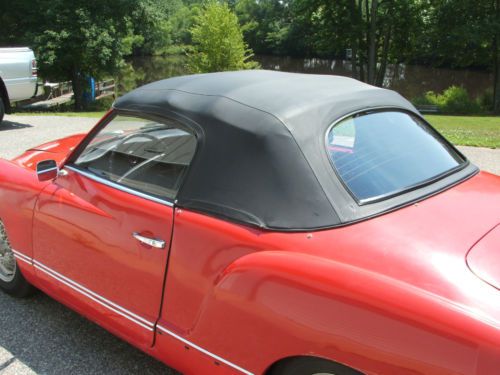 NO RESERVE ! 1974 Karmann-Ghia convertible. The last year. Very good mechanicals and electricals. Runs and drives great. Highway cruises 70+ , no problem. Sale Includes over $500 in new and original parts including a full set of new carpeting, new set of shocks, rv side mirror, many new ignition wires and electrical parts, and other parts. Recently installed a new tachometer, all new window and roof rubber, and front top seal. The car is tight and the doors close tightly.