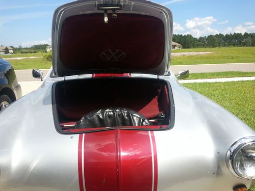 A fully restored unique classic 1967 Kharma Ghia. A must see. Has been garage kept. Less than 2,000 miles by current owner. Silver in color with red racing strip. 1.8L with headers, dual Webber carbs. Custom embroidered carpet with newly upholstered leather seats. Aluminum wheels, new tires. A fun unique classic.
