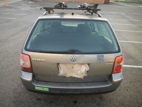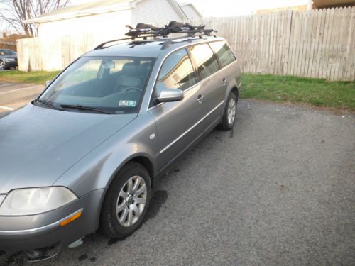 hello I am selling my Passat wagon 4 motion all wheel drive v6 automatic. I drive this car everyday so MILES WILL BE A LITTLE HIGHER when auction ends. the car is pa inspected. it has good tires the inside needs cleaned a little better but its not bad as the pics show. the seats are all in good shape for there age with no tears. the body is in pretty good shape. it does have minor scratches and dings. one dent above the rear wheel as shown but its not bad and the bottom of the bumper cover got broke when I hit a raccoon. I am starting the bid at 1999.99$ with no reserve. I am selling it low because it leaks oil somewhere. I just replaced the timing belt water pump and the seals that come with the kit at 137K. I also replaced the valve cover gaskets less than 2000 miles ago and still leaks. you can smell it sometimes. probably leaks about a quart a month. the car runs and drives fine. tranny shifts as it should. I would drive it anywhere just has a leak somewhere.the picture of the odometer is the mileage on the vehicle when this add was listed and will go up. it is for sale locally and reserve the right to end the auction at anytime. e mail with any questions
