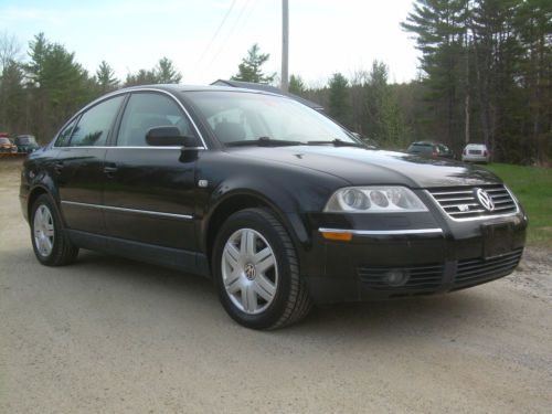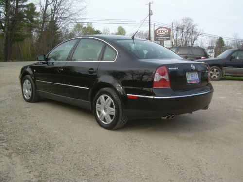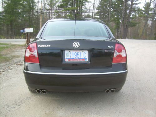 Up for auction, one beautiful 2002 vw Passat w8 4matic all wheel drive, with automatic trans. This car runs and drives great! We took this car in from someone who seemed to take very good care of it! It is loaded with tons of power options, leather power heated seats, sunroof, ac, monsoon stereo with cd player that sounds awesome! Their are no rips or tears in the interior and is very clean in, out, and underneath! The paint on the car shines like new with only very minor light scratches which are very hard to find, even when looking hard. Their is one ding under the w8 emblem on the trunk lid. The front bumper and hood have stone chips on them as shown in a photo. Their are no known problems with the car. Bidders are encouraged to come see the car in person before bidding but are not required to. I reserve the right to end the auction early as it is for sale locally. Any questions, call text or email me anytime at 603-867-6638. Or call 603-529-3333