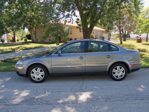 2003 VOLKSWAGEN PASSAT W8 4MOTION LIMITED EDITION ONLY MADE 5,000 A YEAR RANGING FROM 2002 TO 2004. CLEAN INTERIOR NO LEATHER DAMAGE SPOTLESS, EVERYTHING OPERATES PERFECTLY OTHER THEN THE A/C FAN. VEHICLE IS PERFECT FOR ANY TYPES OF ROADS WITH ITS ALL WHEEL DRIVE FEATURE. EASILY HANDLES IN SNOW RAIN OR ANY OTHER WEATHER CONDITONS. PREMIUM SOUND SYSTEM MONSOON WITH 8 SPEAKERS. LOW MILEAGE FOR THE YEAR AND RUNS GREAT. NEW TIRES INSTALLED ALSO FULL BRAKE JOB WAS DONE INCLUDING ROTORS AND PADS. REPLACED OLD AXELS WITH FACTORY NEW ONES. TRANSMITION WAS REBUILT FULLY FOR QUALITY SHIFTING AND RESPONSE. CAR WAS INSPECTED AT VOLKSWAGEN COUPLE MONTHS AGO AND I CAN INCLUDE ALL RECIPETS FOR ALL INSPECTIONS AND REPAIRS. ALL FLUIDS DRAINED AND CHANGED OVERALL CAR RUNS LIKE NEW. ANY QUESTIONS PLEASE FEEL FREE TO CONTACT ME (630) 890-0969