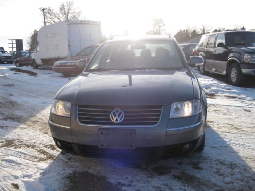This is a 2005 Volkswagen Passat GLX V-6 4Motion Wagon All Wheel Drive, Power everything, 2.8L V6. Power Moon-Roof, Am,Fm,Cass,Cd. The car is in Good Shape.It has a little dent in the lift gate,The inside leather needs to be Shined (see pics) Has 103851 miles.The Tires have about 75% Tread Left! It has always been kept in the garage until we got it. Just recently serviced and had the car completely gone over. This Volkswagen Passat GLX V-6 4Motion Wagon, Runs and Drives like NEW!! IF U Have any ?s call us from 12 to 6pm Central Time 319-342-4278 or E-Mail us! THANKS!!!!