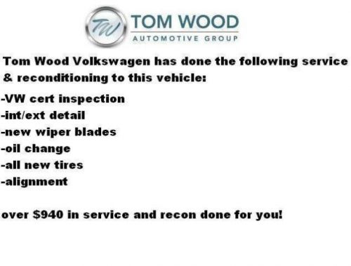The Volkswagen World Auto CPO program has been selected by IntelliChoice for 5 years in a row as the most comprehensive certified program on the market. To meet WorldAuto standards, we set the bar a little higher. Every certified pre-owned Volkswagen is subject to a 112-point inspection. A Volkswagen technician goes through each car with a fine-tooth comb. And if they find anything wrong, theyll repair or replace it. And if anything does go wrong (because you know, sometimes things happen), youve also got the security of two years of 24-hour Roadside Assistance. Thatll cover towing to your nearest VW dealer, jump-starting or even refueling your gas tank.Youll also receive a CARFAX Vehicle History Report, so youll know your cars history inside and out. Well even throw in three months of complimentary SiriusXM satellite service. In short, At Tom Wood Volkswagen we will do everything we can to get you that new car smell, without that new car price. Tom Wood Volkswagen offers a huge selection of pre-owned vehicles from every make and model. Be sure to ask about our Tom Wood Certified pre-owned with a 12 month/12,000 mile warranty.