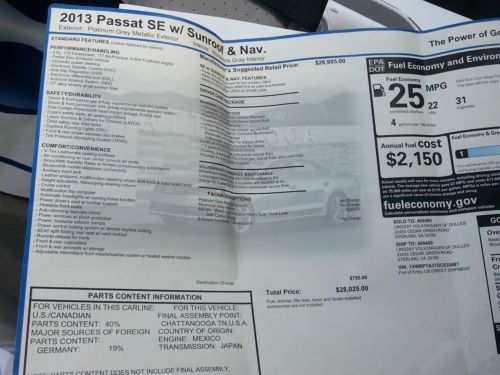 2013 Volkswagen Passat Se Loaded Leather Great Shape Low Miles Navigation on 2040-cars