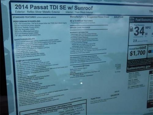2014 volkswagen passat 2.0l tdi se(US $27,855.00)