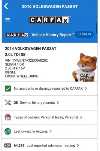 2014 volkswagen passat 2.0l tdi se 4dr sedan 6m(US $20,000.00)
