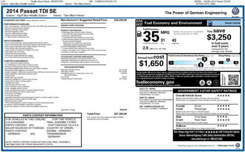 Will Export. Will end the auction early for serious buyers with Cash ready. Fresh incoming vehicle from Volkswagen Financial Services 2014 Volkswagen Passat TDI SE with 6 Speed Manual Transmission. Engine and Transmission Made in Germany! Volkswagen New Vehicle Warranty 3 years / 36,000 miles (warranty expires on 02/2017) Powertrain Warranty 5 Years / 60,000 miles. 24-Hours Roadside Assistance (3 Years / 36,000 miles) Prepaid Maintenance for 2 Years / 24,000 Please Note: This unit was purchased back by VW of America from the original owner because of a faulty ECM.As such, it is being sold with a Manufacturer Buy Back Title.The ECM has been repaired / replaced by VW and the car is covered under the Factory Warranty.Condition 10 out of 10. Mint Car. I have an Inspection Report I can share with the buyer. No accidents or any kind of damage. Will post better/fresh pictures next week. I can provide a free AutoCheck report for serious potential buyers. Payment needs to be Cash, Wire/Bank Transfer or Certified Bank Check from major US Bank (needs to clear first). You can call/text me at 845-538-9248 (evenings after 5.30 or Weekends anytime). If you need this vehicle shipped, please email me the delivery ZIP code - I have access to dealer rates about 20% below market. |