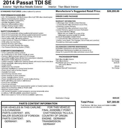 2013 volkswagen passat se tdi diesel 6-speed nav 26k mi texas direct auto(US $24,780.00)