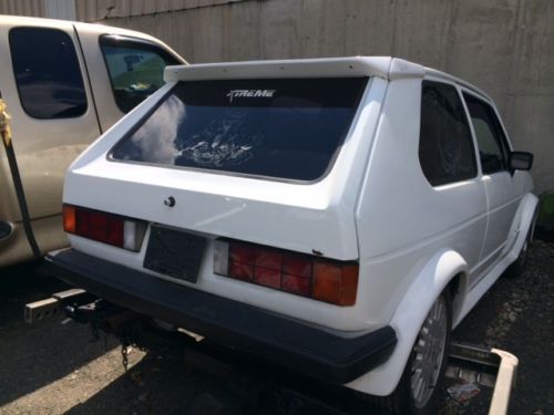 Hello up for sale I have is a project I never got time to do it. It ran with the previous owner. Has 55xxx miles on it. It does need brakes and doesn't run. It rolls, steers, brakes do catch on it. the body is in very good condition with minor rust. It has a widebody kit on it. Interior is in good condition except the back seat is not to good. also it has a roll cage, neuspeed sway bars. Has shaved door handles also has a hood scoop. It is lowered with neuspeed lowering springs. the motor is a chevy 6 cylinder carbureted. It will be sold as is. again it is a project its mostly motor work. Has 13in wheels in the front and 15in rare vw corrado wheels. Please ask any question. thanks and happy bidding. also transport could be found to where ever you are for easy shipping.