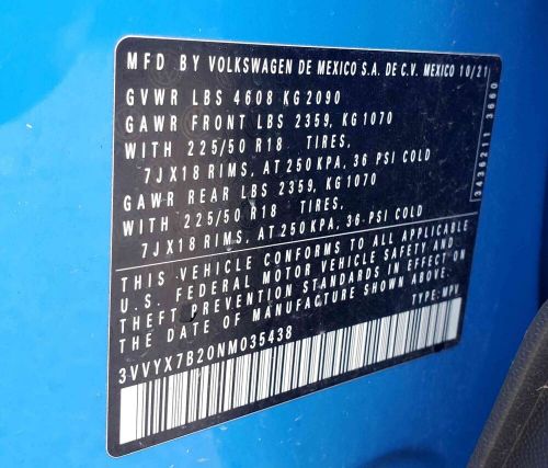 VIN (Vehicle Identification Number): 3VVYX7B20NM035438