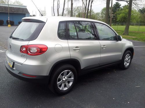 You are looking at the smooth and beautiful 2010 VW Tiguan, S, 4motion, 2.0T engine. Silver with a gray interior, it has 50190 miles and an automatic transmission. VW’s are one of the most unique vehicles on the road; they are fast, fun to drive, and rare. This one is in outstanding condition. It is obvious that the original owner took great care of this car. These cars look great in silver. There are few dings and tiny scratches on the body. The only cosmetic items we noticed were just few tiny stone chips on the nose. They are not even noticeable but we always try our best to describe all of our cars as accurately as possible. No known mechanical problems. The seats are not ripped or marked and have a minimal amount of wear on them. The dash and shift console are spotless. The carpets are in good condition. The alloy wheels in good shape. The tires are Brand New. This VW loaded with options including: power steering, power door locks, power windows, air conditioning, AM/FM stereo with CD Player, 6 AIR BAGs, ABS, traction control, alloy wheels, 4motion and cruise control. We have 1-combo key. This is a VW that can be shipped anywhere sight unseen and its new owner will be thrilled with the condition. Please call Dan or e-mail me with any other questions. I will gladly assist in shipping or pick you up at the airport or train station if you would like to drive the car home. Please check our feedback and bid with confidence. I look forward to speaking with you. (215) 300-2407.