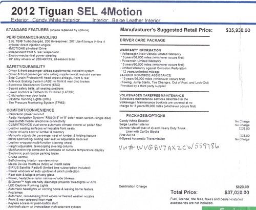2012 Volkswagen Tiguan Sel 4dr Suv 4motion on 2040-cars