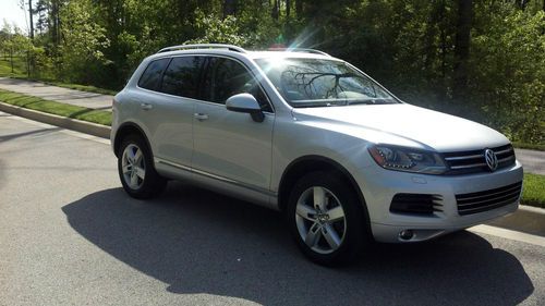 2012 Volkswagen Touareg TDI Lux package (Silver w/ black leather) is STILL UNDER FACTORY WARRANTY! This Touareg comes with a 3 year/ 36,000 mile limited warranty, a 10 year/ 100,000 mile powertrain warranty, 3 years/ 36,000 miles of 24-hour roadside assistance, and 3 years/ 36,000 miles of Volkswagen Carefree Maintenance. I am the Original owner and a NON-SMOKER. This vehicle has no defects and not a scratch on it. This is a luxury diesel SUV that comes LOADED with almost ever option imaginable from its touchscreen navigation, radio, Panoramic Sunroof, rear sensors to its wireless bluetooth and ipod capablities, sirius satellite radio, multi-function steering controls, and dual heated seats, it has all original carpet Touareg matts , it also has comes with the cargo area matt. This SUV also comes with all the ORIGINAL BOOKS AND OWNERS MANUAL. It even includes the ORIGINAL WINDOW STICKER where it shows that it was originally priced at $53,135.00, this car is no different than a brand new one (it has 16,430 miles) , just much cheaper, the color is incredible (Silver and Black Leather), and with diesel prices going down, and the fuel efficiency of this diesel along with the free maintenance from Volkswagen it should be very reasonably priced to operate in this luxurious SUV (Approx 33 miles per gallon/840 miles per tank). I am selling the vehicle because I really do more air travel than road travel, and we have 2 other vehicles.