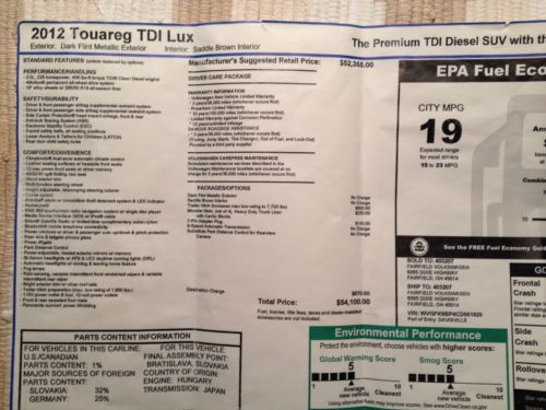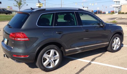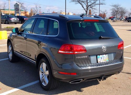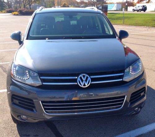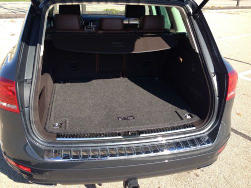 2012 Volkswagen Touareg TDI LUX has the best power train warranty in its class (10 year / 100,000 mi which ever comes first) Which means if something goes wrong with the engine, the transmission, or the 4Motion all wheel drive system, Volkswagen will have you covered. This series is equipped with Navigation features 19" alloy wheels with an up grade of Pirelli Scorpion tires (5k miles) that makes the ride and performance 100% better. Panoramic power sunroof; heated and power adjustable side mirrors with memory, walnut interior trim and center console with metallic trim surrounds; Vienna leather seating (Saddle Brown) 12 way power driver's side with memory, and power lumbar support. I was averaging about 20mpg in the city and 31mpg on the highway. The milage on this car is 90% all highway miles, and always kept in the garage and has never been out in the snow. This is a very solid and safe car and in showroom condition has no dings or imperfections at all. I was the only driver, and I bought the car with less than 100 miles on it and I purchased it here in Cincinnati. The car can be picked up here or you could arrange shipping to your location. Girls are going to college and I need to unload some items. If you have any questions you could email me at (rcfly1@yahoo.com)