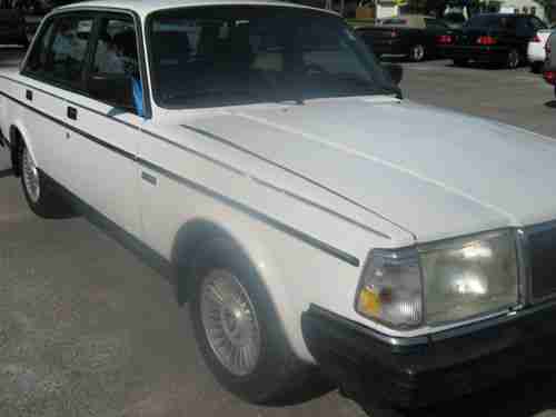 THIS VEHICLE IS A 1989 VOLVO 240GL. IT HAS A 4 CYLINDER ENGINE IN IT AND RUNS REALLY WELL. THERE ARE NO LEAKS AND MOTOR IS CLEAN. THE EXTERIOR OF THE VEHICLE IS IN GOOD SHAPE. THERE ARE NO APPERENT DENTS OR SCRATCHES. THE HOOD ON THE PASSENGER SIDE IS RAISED SLIGHTLY NEAR THE WINDSHIELD. IT DOES NOT HURT THE OPENING AND CLOSING OF THE HOOD. THE HOOD DOES STAY UP WHEN COMPLETELY UP WHICH MEANS THE HOOD SHOCKS ARE IN GOOD SHAPE. THE INTERIOR IS IN REALLY GOOD SHAPE. THE SEATS ARE CLEAN AND THERE ARE NO RIPS OR FADING IN THE CLOTH OF ANY OF THE SEATS. THERE ARE SOME MINOR PLASTIC PEICES ON THE FRONT DOORS THAT ARE BROKEN. WHICH I TRIED TO SHOW IN THE PICTURES. THERE ARE ALSO SOME BROKEN PLASTIC PEICES ON THE CENTER ARM REST AREA TOO, WHICH I ALSO TRIED TO SHOW IN THE PICTURES.