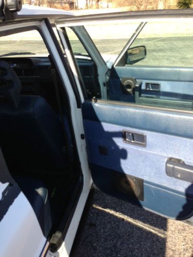 White with Blue vinyl interior. 172,xxx miles and going strong. Everything works, Abs light has been on since I bought it. Starts every time. Automatic Driver airbag Heated seats power windows cd player with usb hookup factory roof rack and thule roof rack Avg 24 mpg.......4cyl Have records as well, bought from a lawyer and has been a great car |