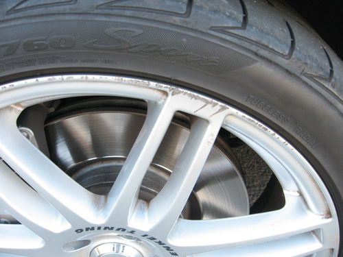 TIRES AND RIMS: COULD USE A NEW SET OF LOW PROFILE TIRS, AFTERMARKET 18 INCHES ENKIE RIMS (ORIGINAL PEGASUS RIM RUBBING WHEEL WALL). TWO RIMS HAS HAS MINOR CURB RASHES.