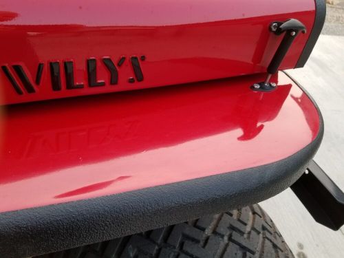 Getting ready for its big debut at the LA Auto Show, the 2014 Jeep Wrangler Willys Wheeler Edition is inspired by early Willys CJ (Civilian Jeep) models with exclusive styling and upgraded off-road goodies. Starting with a Wrangler Sport, these upgrades include a Dana 44 rear axle with limited-slip differential and 3.73 gears, along with meaty BF Goodrich KM Mud Terrain tires mounted to the Willys Wheeler's black 17-inch wheels. For more of a classic Jeep look, this model adds a gloss black grille, "Willys" hood stickers and rock rails to protect the side sills. Jeep is also tossing in a D-ring, tow strap and gloves that are all kept in a special carrying bag.