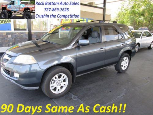 COME FALL IN LOVE WITH THIS BEAUTIFUL LIKE NEW ACURA MDX!! SUPER CLEAN INSIDE AND OUT!! CHARCOAL GRAY EXTERIOR PAINT WITH COMFORTABLE GRAY LEATHER INTERIOR!! ALL WHEEL DRIVE SYSTEM WITH POWERFUL V6 AND SMOOTH SHIFTING AUTOMATIC TRANSMISSION MAKE FOR A GREAT HANDLING SUV!! THIRD ROW SITTING MAKES IT EASY TO BRING THE WHOLE CREW!! PLENTY OF CARGO SPACE WITH FOLD DOWN THIRD ROW AND ROOF RACK!! LOADED WITH POWER WINDOWS, LOCKS, MIRRORS AND SEATS, ALLOY WHEELS, CRUISE CONTROL, TILT WHEEL, PREMIUM CD AUDIO, SLIDING SUNROOF TO ENJOY FLORIDA SUNSHINE, AND ICE COLD AC TO ESAPE THE SUMMER HEAT!! DONT WAIT ON THIS ONE IT WONT LAST LONG AT ONLY $8999!! CALL FOR APPOINTMENT 888-510-7708 ROCK BOTTOM AUTO SALES 11643 STATE ROAD 52 HUDSON FL 34669 $750.00 DOWN DELIVERS MOST CARS TRUCKS SUV'S W.A.C. CALL FOR DETAILS VISIT OUR WEBPAGE TO SEE ALL INVENTORY