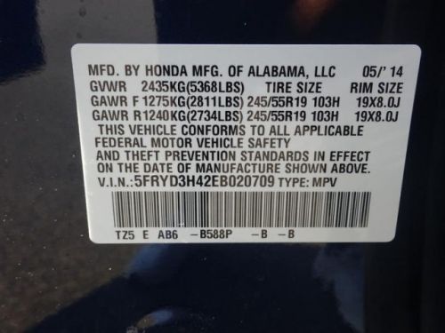 VIN (Vehicle Identification Number): 5FRYD3H42EB020709