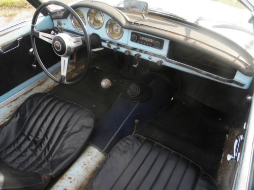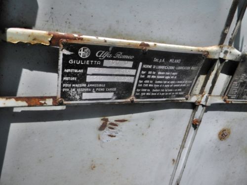 Here is a very complete and correct 750 D Giulietta spider. This car has rusty floors and trunk, I don't think the sills or the rockers need to be replaced, just metal patches. The jack points are solid. This is a true rolling restoration.... or preservation opportunity. Chassis number is 3964 the engine is 40638 which is an earlier example but correct sand cast etc. Engine is professionally rebuilt using.030 mains and .010 rod bearings. The cylinder head was machined and a valve job done and rings were replaced with hastings rings. The fuel tank was cleaned and a "Red Cote" lining used, brake hydraulics have been done and the car drives great.. Correct first series tunnel case transmission with no noises and it shifts as new. The Lucas starter is rebuilt as well the Solex carb. The electrics need to be sorted as the wire harness is not being used, I pulled all the fuses. I lost my body guy and have decided to move on to other projects. There is no jack or tool roll and the RS lower seat pan is missing. The correct rear axle limit straps are there but need repair. There is no canvass top however the top frame is there. It comes with a tonneau cover that would allow you to use this car daily. For more pictures go to : https://picasaweb.google.com/113042506648400311804/3964?authuser=0&authkey=Gv1sRgCJbOiOjdq7qqpQE&feat=directlink I have a youtube video of the car driving and the engine running however I'm not sure ebay will allow ...... you tube: http://youtu.be/CkzgM_2NlqU If you have any questions please call or email me...serious inquires only Ric |