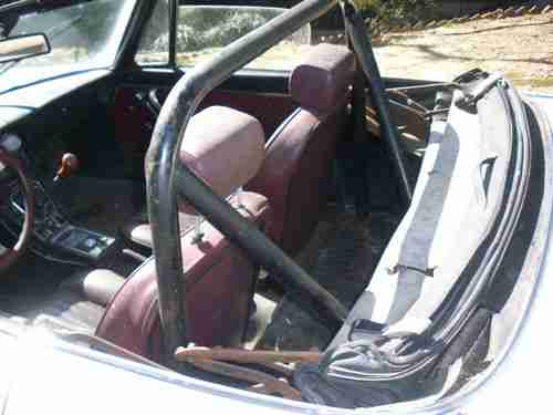 The pictures best speak for themselves but she definitely needs new seat covers. The door panels are in nice shape. The dash is cracked. When last she was running all of the gauges were working. The top is shot. It may be the original. The spare tire well has rusted through. I had bought a new well but right now I don't seem to be able to lay my hands on it. The only other significant rust I find is on the right rear fender behind the wheel well. I tapped on it pretty hard and in a spot about 2-2 1/2 inches round is obviously soft and needs to be cut out and replaced.