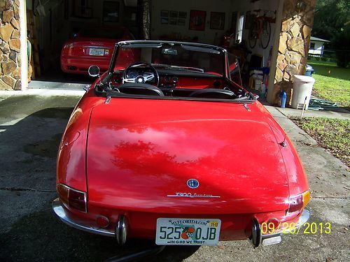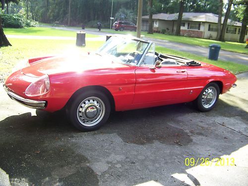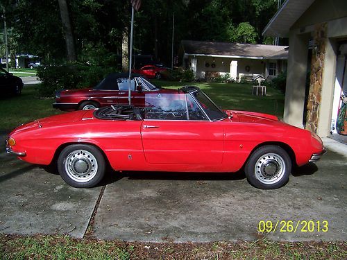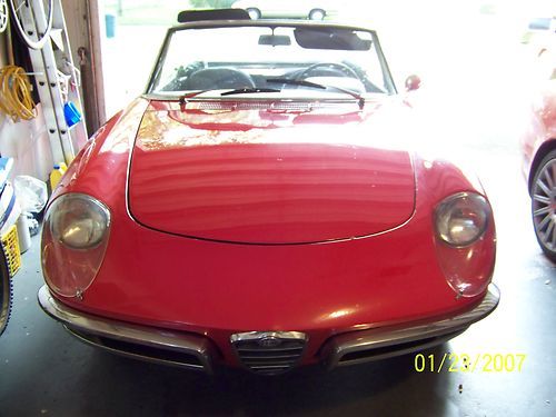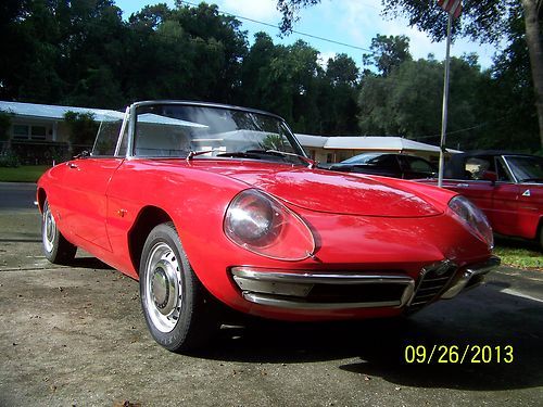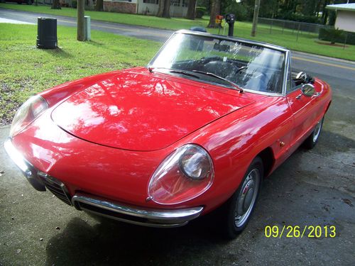 1968 Alfa Romeo Spider 1300 Junior, European model. This model is somewhat rare because it was produced for the European market and not imported to the US. Very good condition inside and out. Fully restored by previous owner to factory specs. Rebuilt 1300 engine and transmission with original factory dual Delorto carbs. No rust or dash cracks. Drives and shifts great through all five gears (no second gear crunch). All electrics and gauges work properly. Canvas top is a bit worn, but functional with clear rear window.