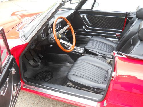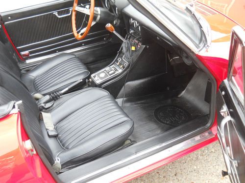 This 1973 Alfa Spider is great fun and it has won local car shows. The paint is only 1 year old and the interior seats are in fantastic shape. This is a car you can just get in, start and enjoy! It is not a perfect car, but it is in great condition and ready for driving or showing. There is no rust that I can find. It has an ANSA exhaust and an iPod ready stereo. The chrome is in good condition but not perfect. The windshield has some minor scratches on it. The top is in great condition. Door panels are not perfect. The gas gauge works, but the meter does not display. It has headlight covers without faded acrylic.