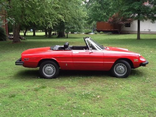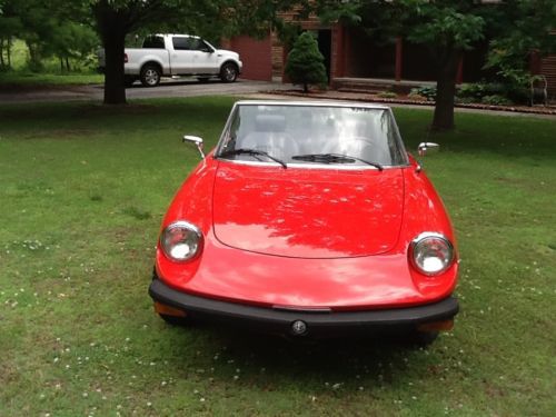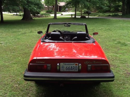 A very low mileage ALFA spider in very good condition. The car has a five diget odometer and reads 26700 miles. There is no way to verify this mileage but the car is very straight with NO rust. I purchased the car from a dealer in Portland, OR and I'm assuming the car spent it's whole life on the west coast. The car was refitted with Weber carbs last Oct and pulls very strong, much better than with the Spica fuel injection. The interior is in very good shape with no tears on the seats. The car has an after market JVC radio/CD player. I have the original radio and will include it. The transmission has no issues with the second gear syncros. The cloth top is also in good shape. Tires have about 75% of tread left. Feel free to ask me any questions.