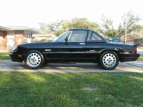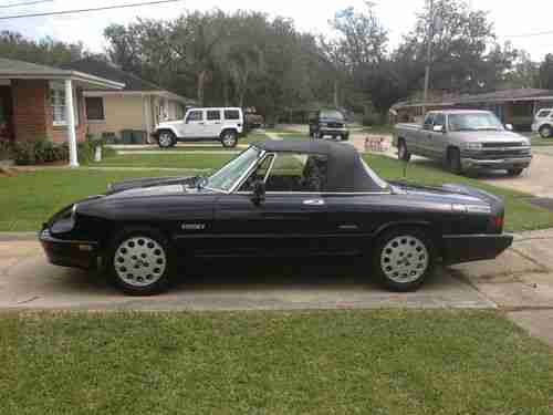 1990 ALFA ROMERO QUADRIFOGLIO SPIDER, GREAT RUNNING ALFA, BRAND NEW PIRELLI TIRES, NEW BATTERY, NEW GLOSS BLACK PAINT, UPGRADED EXHAUST, ENGINE WELL MAINTAINED DURING OWNERSHIP, REPLACE MASTER CYCLINDER, ALTERNATOR, FUEL PUMP, AC COMPRESSOR, VALVE JOB, HEAD AND GASKET, BLUE TINIT WINDSHIELD, WOOD GRAIN SHIFTER, SPORT LEATHER RACING STEERING WHEEL, NO RUST NEVER BEEN IN AN ACCIDENT. Car does not have a stereo or ash tray. Convertible soft top has tear and rear window is discolored. Electric passenger window does not work. Car is drivable to any seller's location or please arrange to have it shipped from my location in Metairie Louisiana. Car is stored under a car port and has never been in a flood or hurricane.