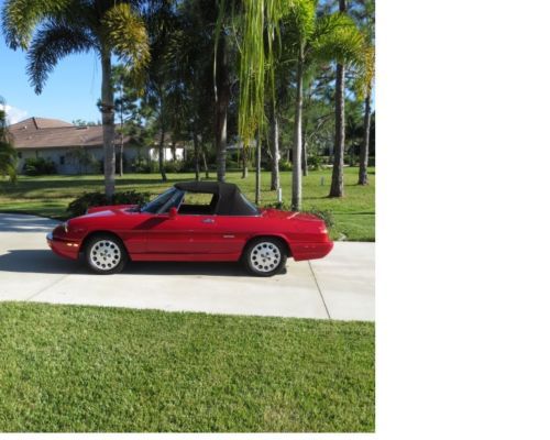 1992 Alfa Romeo Spider Veloce -Series 4 This is a fully sorted example of a true Italian classic roadster , the Pininfarina lines are truly timeless. this is the last series of the Italian icon- Series 4 and are the most desirable This is a standout rust free example of a true classic , don't let this one get away Full service history is included -there are plenty out there but few if any as nice as this. This Alfa Runs and drives like the day it came off the showroom floor! This car has been Garage kept since day one and has only been driven on beautiful Florida days Also has a clean Florida title. Would make a nice piece to anyone's collection. These cars are getting harder and harder to find, let alone in this shape. Please feel free to email me with any questions or concerns. More pictures upon request. This is truly an unbelievable beauty in near mint condition. If You are looking for a Alfa this is it! * One Owner * 18,100 Original miles * Interior spotless * Cold Air Conditioning * 4 New Michelin Primacy MXV4 tires * New Battery |