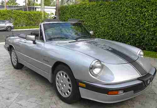 Most all work was performed by Auto Veloce a highly regarded and rated professional Alfa Specialist / Shop in Miami. I have receipts and pictures for most all of the improvements. The paint( Correct Alfa Silver) and interior were redone prior to me purchasing. I had the Center console, that always cracks, redone in Genuine Leather. This car drives, looks and still smells like new. The engine is smooth, runs strong, burns and leaks no oil. She Runs at temperature all day and is extremely comfortable and reliable. The car drives straight, does not pull, is tight and does not vibrate at high or low speeds. The tires are in good shape with little tread wear and the rims are in good condition. The car shifts beautifully and the infamous 2nd gear Synchro is good.