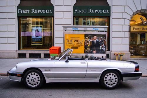 Opportunity Knocks.......... You now have the opportunity to own what is currently The Most Visible Alfa Romeo In The World. This Alfa Romeo Spider Veloce Quadrifoglio was filmed by one of the greatest motion picture Directors of our time, Martin Scorsese, for the new worldwide smash hit movie "THE WOLF OF WALL STREET". This special, one-of-a-kind and near-mint Pininfarina Quadrifoglio appears not only in the Movie - - but also in the award-winning Promotional Trailer; televised Award Shows; Entertainment and News television shows such as Entertainment Tonight and CNN; and is constantly visible on a daily/worldwide basis via mass media websites covering this hit film (NBC/CNN/Los Angeles Time/The Hollywood Reporter, Barrons, etc). Scorsese uses this Alfa Romeo as an automotive icon representing 1987 Wall Street filming him in scenes featuring Leonardo DiCaprio and Jonah Hill. In the award-winning movie trailer, Scorsese and Paramount use this Alfa as the main visual under Leonardo DiCaprio's debut character voice-over: "My name is Jordan Belfort". Just last week during the Golden Globes Awards telecast on ABC, this Alfa was featured as the very first scene in the nominated "Best Picture" video presented by Jonah Hill to a televised audience of 22 million US viewers (250 million viewers worldwide). Two nights ago, this Alfa was seen on the CNN show Piers Morgan Live featuring a one hour interview with Leonardo DiCaprio's character, the controversial Jordan Belfort. And just this morning, Alfa/Leo scene is seen in a Los Angeles Times feature on Jonah Hill. The Wolf of Wall Street has just received 5 Oscar nominations, including Best Picture. This vintage Alfa Romeo is simply like "No Other" in the world now. 2nd Owner has pampered and babied this New York City-based "Rock Star" since 2000. Serviced by the finest Alfa heritage service centers in NY, it runs flawlessly and turns more heads/draws more attention here than any car on the road - -bar none.. Not a day goes by when he doesn't receive smiles, accolades, compliments and cell phone/Instagram photos taken by the general public-- even while cruising on the highway! Current vehicle condition: Mechanicals/Electricals all 100%. Interior, seats, carpets, instruments: all 100%. Engine and Clutch rebuilt within past 3 years. 5 year old Pirelli's in great shape. A/C is cold! Soft top fabric is dark black and still great, however rear window has some scuffs. Leather Boot is fine, however needs hardware refastening to leather (best done when soft top is eventually replaced). Factory hardtop has small corner crack from prior owner (see pix). Passenger side exterior "runner" has a 3" dia factory convex bump out (classic Alfa sheet metal issue, see pix). Front emblem is 1/4 dented "in" (Owner will try to fix prior to sale, see pix). Small, old windshield crack (3/8" in center" from first owner, not noticable). Original Radio works/Cassette doesn't. Invisible rear crack in teflon gearshift handle (Owner will try to fix prior to sale). Windshield washer motor is down (Owner will try to fix prior to sale). Passenger side door lock cylinder is broken (Owner will try to fix prior to sale). "Trying to Fix" means "if parts are immediately available" (these are all minor, relatively inexpensive repairs/parts fortunately). Basically, 99% of the car is mint....the above 1% are simple fixes, general wear-and-tear stuff for New York City year 'round, garaged cars. Through visiblity in the hit movie; pre-release trailers/continuing high-visiblity marketing; and the worldwide internet media coverage; this Alfa Romeo has garnered at least 100 million visible impressions worldwide - - and counting (all numbers are 100% quantifiable). This Quadrifoglio was filmed in Fall, 2012 in scenes starring Leonardo DiCaprio, Jonah Hill and Jon Bernthal (see pix) at locations on Wall Street, Westchester NY and Northern New Jersey. It is one of only 4 "exotic/collector cars" featured in the movie. THE WOLF OF WALL STREET has been nominated for FIVE Academy Awards, including: Best Picture, Best Director (Scorsese), Best Actor (Leonardo DiCaprio) and Best Supporting Actor (Jonah Hill). This is your opportunity to own a continuing classic, one-of-a-kind collectable who's value will only increase - - and quickly!!!!!! Winning bidder to handle and pay for all transportation and insurance requirements (for domestic or international delivery points). Owner will require 10-14 days post-auction to prep and detail car for final transport to winning bidder. Balance of payment due at time of final shipping/transport. Feel free to email Owner with any questions. (attached photos include: movie set photos, movie validation/certified paperwork, media captures, the personalized Clio/Grand Key Art Award awarded to the first movie trailer; interior condition and exterior beauty shots. Note: all media captures are taken directly from the trailers and live broadcasts appearing on that media outlets coverage (NBC News, The Hollywood Reporter, Access Hollywood, Entertainment Tonight, The Golden Globes Awards telecast, and multiple International media outlets,). |