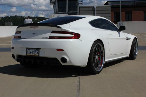 2008 Aston Martin V8 Vantage **Exterior Finish: Stratus White PearlInterior Finish: Obsidian Black Leather ** Factory Options **AUTOMATIC TRANSMISSION F1NAVIGATION SYSTEMCD PLAYERAM FM STEREOPOWER DRIVER SEAT WITH MEMORYPOWER PASSENGER SEAT WITH MEMORYHIGH INTENSITY XENON HEADLAMPSPARKING SENSORSSATELLITE RADIOBLUETOOTHPOWER FOLDING MIRRORSGARAGE DOOR OPENERSCRUISE CONTROLRED BRAKE CALIPERS ** Professional Aftermarket Enhancements **FRONT CARBON FIBER SPOILER SPLITTERSIDE SKIRTS IN CARBON FIBERREAR VALANCE IN CARBON FIBERTRUNK LIP IN CARBON FIBERUPGRADED OZ LIGHTWEIGHT WHEELSUPGRADED SUSPENSIONUPGRADED AIR INTAKE SYSTEM ** Included Accessories **COMPLETE ASTON OWNERS MANUAL SET !2 REMOTE MASTER KEYS !