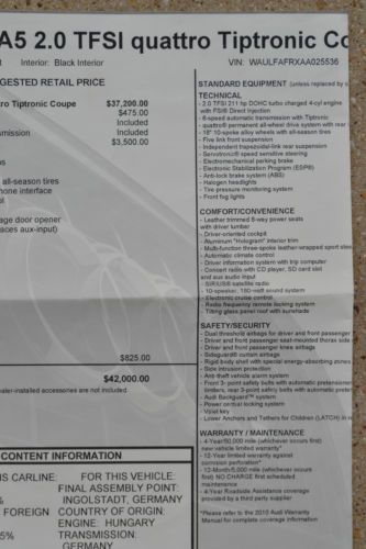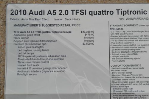 2010 Audi A5, Premium Plus Coupe, Automatic Six Speed Transmission, Xenon headlights, Sirius satellite Radio, Bluetooth,