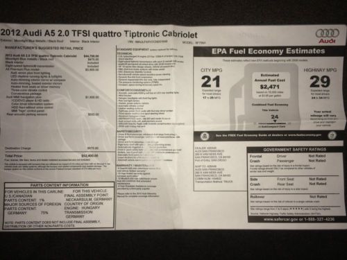 2012 Audi A5 Quattro Cabriolet Convertible 2-door 2.0l on 2040-cars