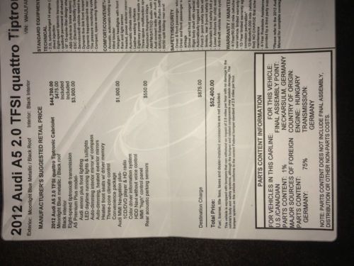 2011 audi a5 quattro 2.0t engine 6 speed manual transmission quartz gray black(US $34,800.00)