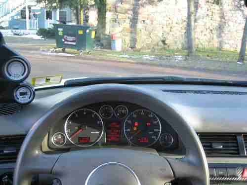 The car also has many mods done to it including the ECS Tuning lightweight pully kit. (crank, power steering and alternator pullys). A Blue Kevlar Gates Racing accesory belt, Custom Cold Air Intake, 17" Montegi Lightweight Rims, ECS Tuning RED Vaccum Line Kit, AEM Digital Oil Pressure Gauge, AEM Air/Fuel Ratio Gauge (NOT HOOKED UP), Phat Box Phat Noise Media Center installed in trunk, R8 Style Full LED TailLights, R8 Style HeadLights with built in DRLS, RS6 style trunk lip(not installed needs to be sanded and painted, 3M Carbon Fiber Interior Wrapped along with Exterior Pillars, RS6 Aluminum Mirror Caps, MagnaFlow Exhaust, ECS Tuning Snub Mount, thats all i can think of now.