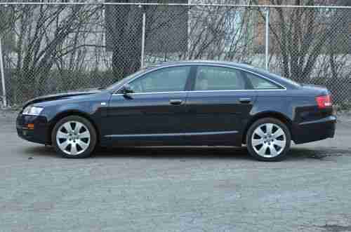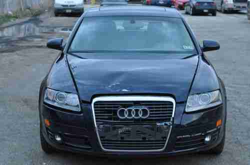 You are bidding on a damaged 2006 AUDI A6. This powerful & luxurious sports sedan is fully loaded with everything you can think of including power everything, navigation, premium package, heated seats, dual climate control, memory seats, BOSE AUDIO SYSTEM and much much more. It comes with an amazing color combination of BLUE exterior with an TAN interior. As you can see from the pictures, the damage is primarily to the front side of the sedan. NO FRAME DAMAGE. VERY LIGHT HIT, NO AIRBAGS DEPLOYED. This car has highway miles of 96k. This beautiful sedan starts right up sounds great, and lot drives.