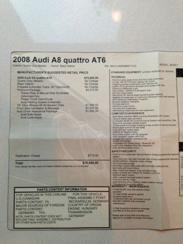 2008 Audi A8 Quattro Sedan 4-door 4.2l on 2040-cars