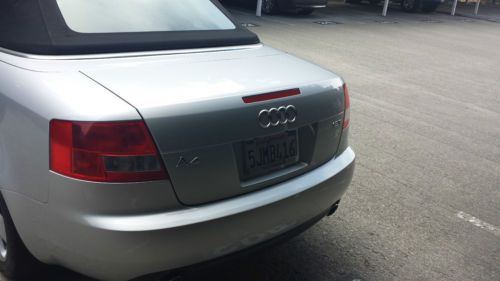 2004 Audi A4 Cabriolet is loaded with power Steering , brakes, window, power seats, Audi Bose Symphony AM/FM/SAT/CD/radio with Bose speakers, This 1.8 Turbo Charged run and drivers greats, The auto transmission with tiptronic shift works perfectly. The interior is in great shape ,Black Convertible top in good shape, Leather - wrapped shift and hand brake handle, This car has 84,000 miles, Car was service on May 17, 2014 by Livermore Audi , Give me a call 650 201-8974