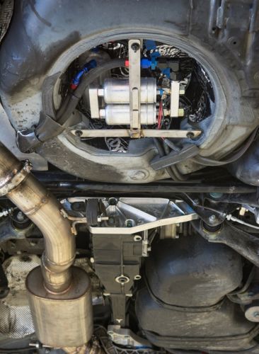 3.5” 750hp Precision intercooler Tial MV-R 44mm waste gate, 1 Bar Spring Black Anodized Tial 50mm Recirculating valve, 1 Bar Spring Black Anodized Twin 044 Fuel pumps mounted in charcoal canister location with .5L catch can, twin relayed off lift pump in tank, custom –AN and stainless hard lines Fuel Lab Adjustable Fuel Pressure regulator with 034 Motorsport Gauge EV 14 750cc injectors 034 High flow billet fuel rails, each bank individually fed, Black Anodized Stainless charge piping Electronic fan conversion 034 85MM Slot style MAF Drivetrain: