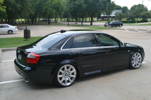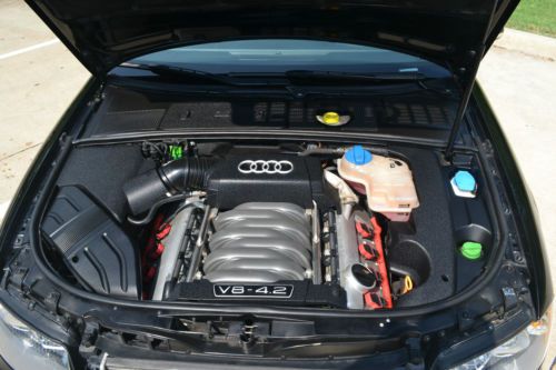 The car has a 6 speed manual transmission and the 4.2L 340hp V8 motor is completely stock (ALWAYS babied and NEVER abused). To keep with the maintenance schedule I've recently had New Clutch, New AC Compressor, New Starter, and New Cam Adjusters installed. From the factory this car came fully loaded with every option including but not limited to Bose Premium Sound, Power Sunroof, Heated Seats, Onstar, Satellite Radio, etc. The interior has a rare combination of Aluminum Trim and Black leather w/ Silver Alcantara Recaro Seats. It has also been tastefully modified with the following upgrades: Kenwood Excelon DNX6980 In Dash Receiver (DVD/CD, Navigation, Bluetooth), Custom suede trunk setup designed to match interior housing a JL Audio 10W7 Anniversary Edition Subwoofer and JL Audio 500/1v2 Amplifier, Kenwood iPod/Video Cable, Base Control Knob, Audi all weather floor mats, and tinted windows. The suspension and wheel combination on this car is second to none giving it the perfect stance. It is equipped with H&R Coilovers for ride height adjustability which can be reverted back to stock ride height if preferred. The wheels are Bentley Continental GT Mulliner 2 Piece - 19X9 ET 41 wrapped in Continental Extreme Contact DWS - 225/35 ZR 19 tires (Wheels alone are valued at $1650.00/a piece). I will also include all 4 OEM wheels w/spare. |