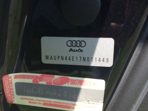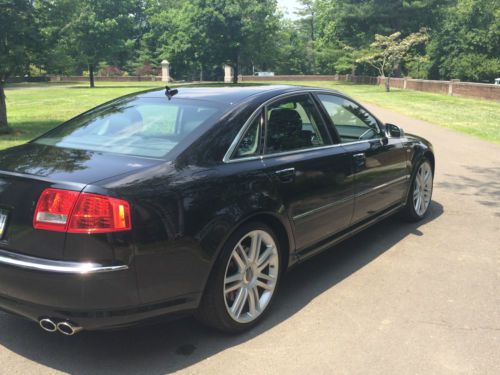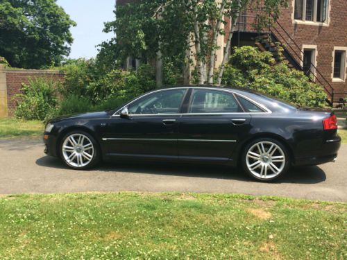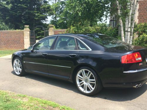 THIS IS THE LOWEST MILEAGE DOCUMENTED AUDI S8 KNOWN TO CURRENTLY EXIST! A 2007 AUDI S8, NEAR FLAWLESS, PEARL BLACK WITH BLACK LEATHER AND SUEDE HEADLINER, FULLY SERVICED BY NEW COUNTRY AUDI IN GREENWICH CT, FULLY LOADED, THIS GORGEOUS AUDI S8 HAS SPENT ITS LIFE IN A FULLY CLIMATE CONTROLLED GARAGE. THERE IS A THIN 1 INCH LONG SURFACE SCRATCH ON DRIVERS DOOR AND AND ONE RIM HAS A MINOR SCUFF - UNDER 3/4". SERIOUS BIDS ONLY. ONCE IN A LFIETIME OPPORTUNITY TO OWN A FUTURE CLASSIC COLLECTIBLE!